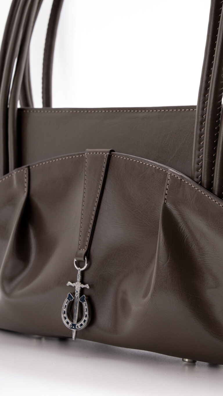 A distinctly contoured shoulder bag with a story to tell. Made from olive pomace vegan leather lined with vegan silk (cupro) and detailed with our signature sword-and-horseshoe logo, Ris blends bold heritage with quiet elegance, made to move through your days and become part of your story.